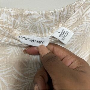Midnight Sky Women Skirt Large Cream Tan Flax Rayon Button Up Split Boho Resort