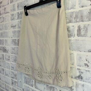 Midnight Sky Women’s Linen Blend Skirt Ivory with Embellishments NWOT