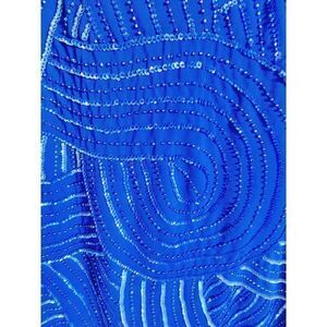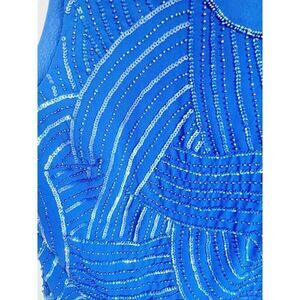 Midnight Velvet 1X Top Blue Beaded Scoop Neck Sleeveless Vintage Lined Side Slit