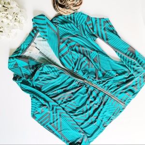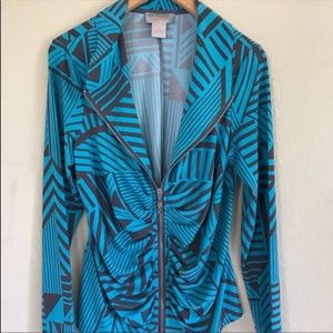 Midnight Velvet Aqua and Gray Zip up Jacket