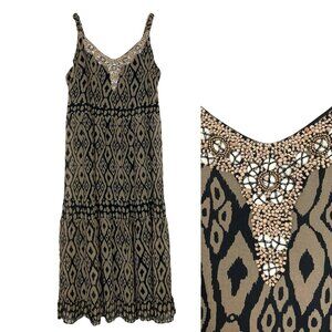 Midnight Velvet Aztec Southwest Beaded Boho Midi/Maxi Dress Brown Black Size 1X