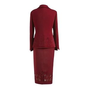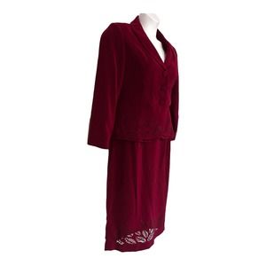 Midnight Velvet Cutwork Fall Burgundy Desk to Dinner Office Power Skirt Suit