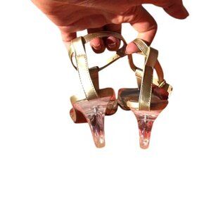 Elegant sandals with a clear heel and rhinestone embellishments, crafted for a sophisticated look. Ideal for both formal and semi-formal occasions.