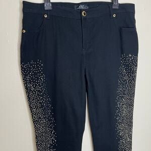 Midnight Velvet Jeans 14 Dark Wash Straight Embellished Jeweled High Rise Denim
