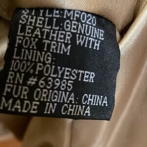 Long Sleeve Fully Lined Zipper and Snap Closure Jacket with Rabbit Fur Trimmed Hood. Chest 24”. Length 34. Light Peel and Faint Mark Shown.