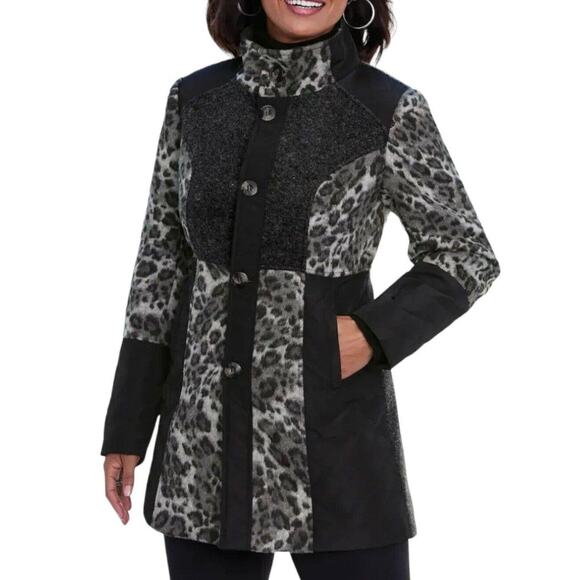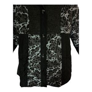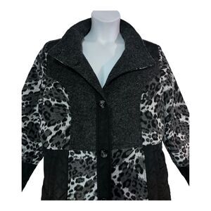Midnight Velvet Quilted Mixed Media Gray Black Leopard Thigh Length Jacket