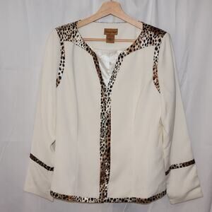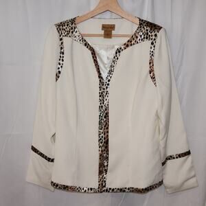 Midnight Velvet Size 12 White Jacket Animal Trip Polyester Hook Eye Lined