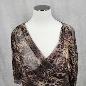 Midnight Velvet Vintage Leopard Print Semi Sheer Faux Wrap Dress Plus Size 3X