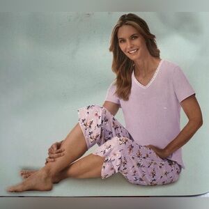 Carole Hochman 4-Piece Cotton Pajama Set Size M Purple Floral & Stripe Sleepwear NWT