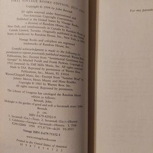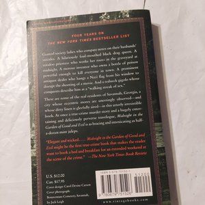 In charming, beautiful, and wealthy old-South Savannah, Georgia, the local bad boy is shot dead inside of the opulent mansion of a gay antiques dealer, and a gripping trial follows. — Genteel society ladies who compare notes on their husbands' suicides. A hilarious black drag queen. A voodoo priestess who works her roots in the graveyard at midnight. A morose inventor who owns a bottle of poison powerful enough to kill everyone in town. A prominent antiques dealer who hangs a Nazi flag from his window to disrupt the shooting of a movie. And a redneck gigolo whose conquests describe him as a "walking streak of sex."