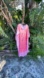 This pretty caftan has a floral border print, but the interior is a pink leopard print I believe. Satin poly fabric one size fit in excellent condition sea measurement photos