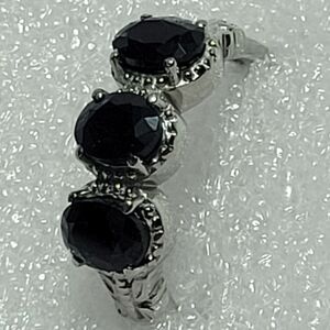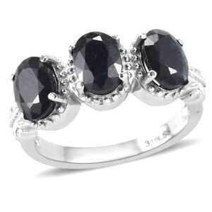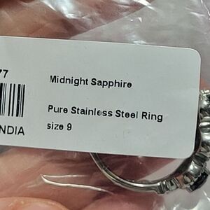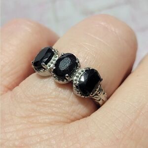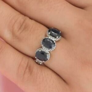 This is a Beautiful 😍 Dark Midnight Sapphire (it looks almost black) 3 Stone Ring in Stainless Steel 3.25 ctw Size 9