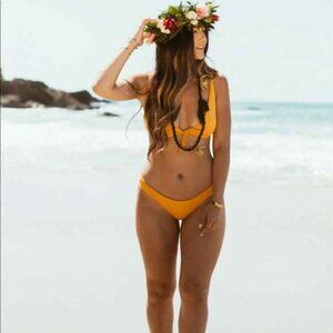 Gorgeous Midori bikini set in a bright tropical color (called "Mango").