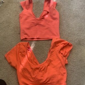 Two coral colored midriffs. Only worn two times