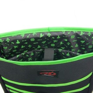 The Gauntlet arcade messenger bag mimics retro game kiosks, including coin slots and cabinet art. It is made of polyester and has a unique screenshot top flap. Featuring a spacious main compartments with interior organization pockets and a zippered interior pocket and back exterior pocket, it also has a Custom interior lining based on the classic Midway game
