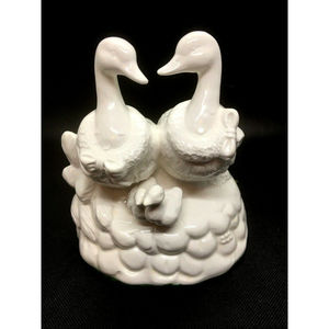Vintage Midwest Ceramic White Ducks "Love Birds" Music Box