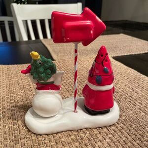 Midwest Gift Santa and Snowman Salt and Pepper Shakers on Gnome Crossing Stand