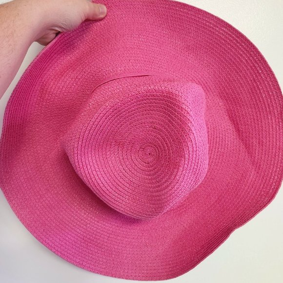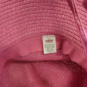 Excellent condition sun hat with wide brim, chin ties, and in a very happy pink.