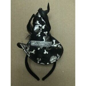Midwest Halloween Party Witch Hat Headband Costume Skulls Black Silver One Size.