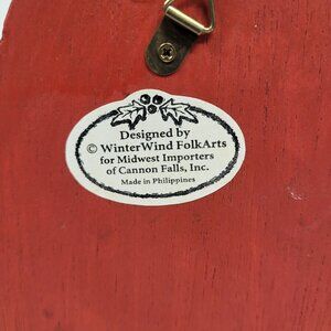 Vintage Winter Wind Folk Arts Midwest of Cannon Falls Handcrafted wood Santa Wall hanging or sitting card box made in the Philippines. Measures approx 11'' H, 8 1/2'' wide and 3 3/4'' D. Good preowned condition.