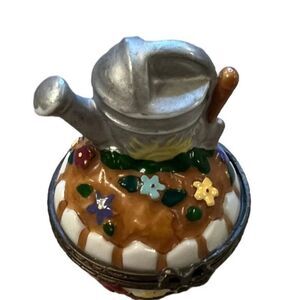 Midwest Of Cannon Falls Watering Can Flower Garden Porcelain Trinket Box Hinged.