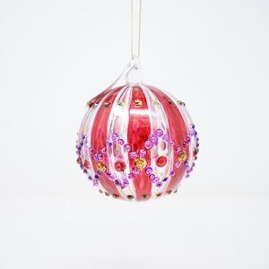 Midwest Seasons Of Cannon Falls Ball Multicolor Stripe Glass Christmas Tree Ornament