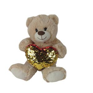 Midwood Flippable Sequin Heart Red/Gold Beige Teddy Bear Plush 12" Stuffed Animal