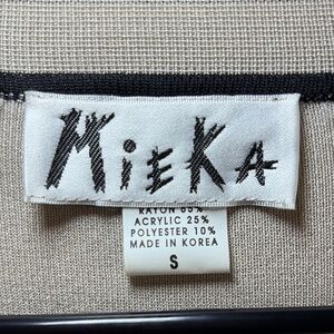 Chic vintage Mieka open-front cardigan in a dusty rose (pale pink) with black trim. Size Small. Features shoulder pads for a structured retro look, long sleeves, and front pockets. Perfect for layering or a classy minimalist outfit.
