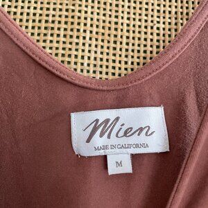 Mien Lakeside Wide Leg Jumpsuit, color is rosewood, size is medium. Has pockets, is super comfy, a small mark is shown in pictures, but really hard to see!