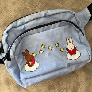 Miffy Baggu Fanny pack. In good condition comes from a smoke free home. I did have some pins on this bag so it does have 2 small holes at the top FYI!