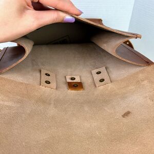 Mifland Leather Standard Rucksack in mini size, in a cognac tan shade called oil/copper. The Standard Rucksack backpack uses a natural vegetable leather that will wear and patina beautifully over time. This bag features a top handle as an alternative to back wear and full adjustable removable back straps for optimal comfort, as well as a front flap with button closure detail that can be adjusted depending on how full your bag gets. Excellent used condition, small mark on interior flap (not visible when worn) and minor exterior leather scratching that adds to bag's character, all pictured. Full leather, made in the USA. 11"L x 14.5"H x 5"D, 28 - 36" total strap length (adjustable).