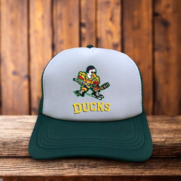 Mighty Ducks Mens Trucker Hat Green Snapback 90s Childhood Hockey Cult Classic