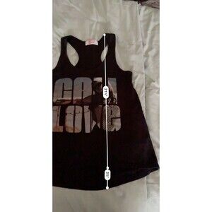 The Mighty Fine Black "CALI LOVE" Tank Top in size Small is a versatile and stylish addition to any woman's wardrobe. This sleeveless top features a scoop neckline and is made from a comfortable cotton blend material. With its retro woman character and love theme, it is perfect for casual occasions in all seasons. The regular fit and breathable design make it ideal for active summer days or layering in cooler weather. Machine washable for easy care, this tank top from CALI LOVE is a must-have for any fashion-forward woman looking for a basic yet chic top.