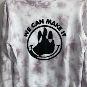 Smiley face/thumbs up “we can make it” purple tie dye crew neck sweatshirt