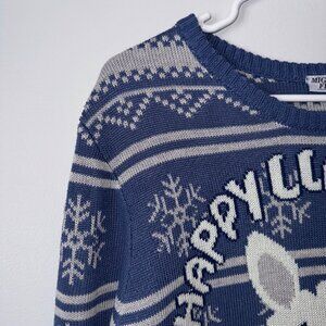 Mighty Fine Happy Llamakkah Snowflake Sweater XL Blue & White