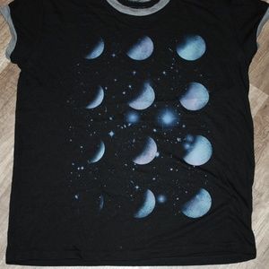 Mighty Fine Moon Phase Black T Shirt Sz S