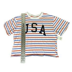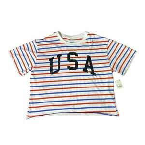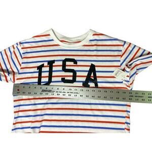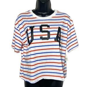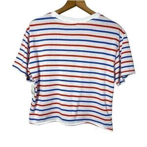 Mighty Fine Striped USA Patriotic Women’s Crop Top Red & Blue Stripes Size Large