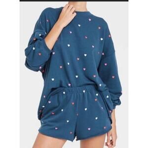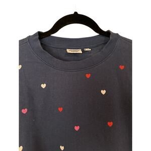 Mighty Fine Women's Long Sleeve Heart Dot Oversize Pullover Sweatshirt Sz M Blue