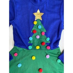 Mighty Fine Dress Women's MEDIUM Blue Green Cute Tree Holiday Seasonal Pom-Pom