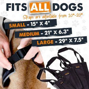 In great condition Mighty Paw Dog Lift Harness. Size Large and color black. The lift harness measurements are 29" x 7.5". Straps are adjustable from 10" - 20". Note the lift harness may have some fur on it.