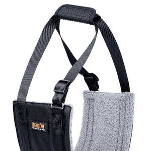 The Mighty Paw Dog Lifting Harness gently helps lift your pet’s hind legs which makes it perfect to support dogs with arthritic hips, DM, spinal stroke and those recovering from ACL/CCL surgery. To use it, place the fleece-lined support pad under your dog’s belly so that it’s close to their hind legs. Adjust the straps to fit your size and use the comfort handle to hold them. Now you can guide your pup into the car, onto furniture, up & down stairs or to go potty.