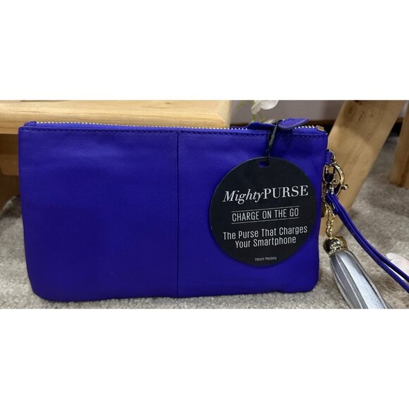 MightyPurse Charge On The Go Purple Wristlet Built-In Smartphone Charger Tassel