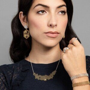 "The Hive collection effortlessly blends geometric lines and organic shapes for a collection that is both architectural and effortless. Designed in New Orleans on historic Magazine Street. All Mignon Faget jewelry is handcrafted, many designs from natural materials, and as such each piece may have variations in shape, size, and patina and vary slightly from the product image. Please enjoy your design as a unique, one of a kind object."
