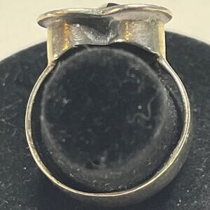 This stunning sterling silver ring by Mignon Faget is the perfect addition to any jewelry collection. The heart shape and purple amethyst stone make it a great choice for Valentine's Day, anniversary, birthday, or engagement gifts. The ring features a square-shaped main stone and is stackable with other bands for a unique look. The ring is a vintage piece from the 1990s and has been signed by the brand. It is made of high-quality gemstone material and has a beautiful, artistic design that is sure to catch the eye. This original piece was manufactured in the United States and is a great example of fine jewelry craftsmanship.