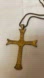 Stylish gold cross pendant with a textured design on a gold chain. Ideal for any outfit.