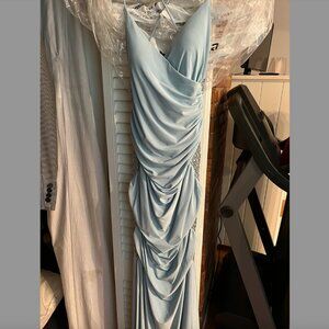 Mignon Ruched V Neck Evening Prom Gown Baby Blue Beaded