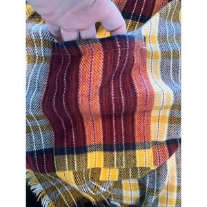 This wrap boasts a chic contrast stripe design in a lightweight fabric that features convenient arm holes. It's the perfect layering piece for cool days, offering both style and comfort. Pockets on both sides