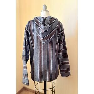 Miguel Geraldo Baja Hoodie Sweater Pullover Striped Mexican Jacket M Gray Brown