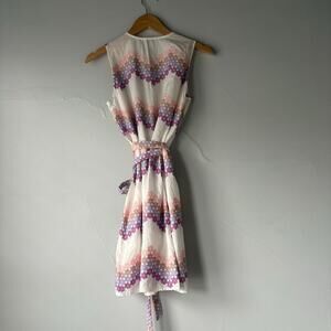 White cotton (100% Cotton). Wrap dress. Sleeveless. V-neckline. 34" from shoulder to hemline. Imported.