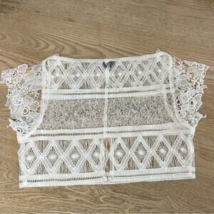 Miguelina Eloise Riviera Mayan Lace Floral Sheer Crop Top Size XS/S